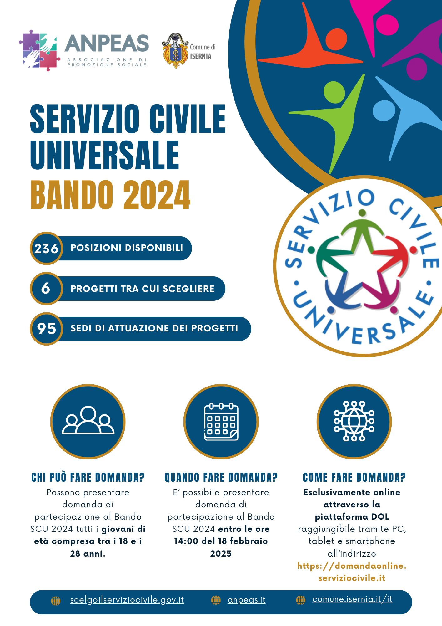 Avviso pubblicazione Bando Servizio Civile Universale del 18 dicembre 2024 – Invio linee guida per la presentazione delle domande e indicazioni utili all’attività di pubblicizzazione del Bando.